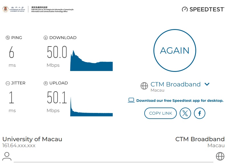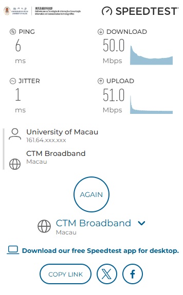 - Connect with UM Network and access to Campus Network Performance Test And Feedback Platform.
